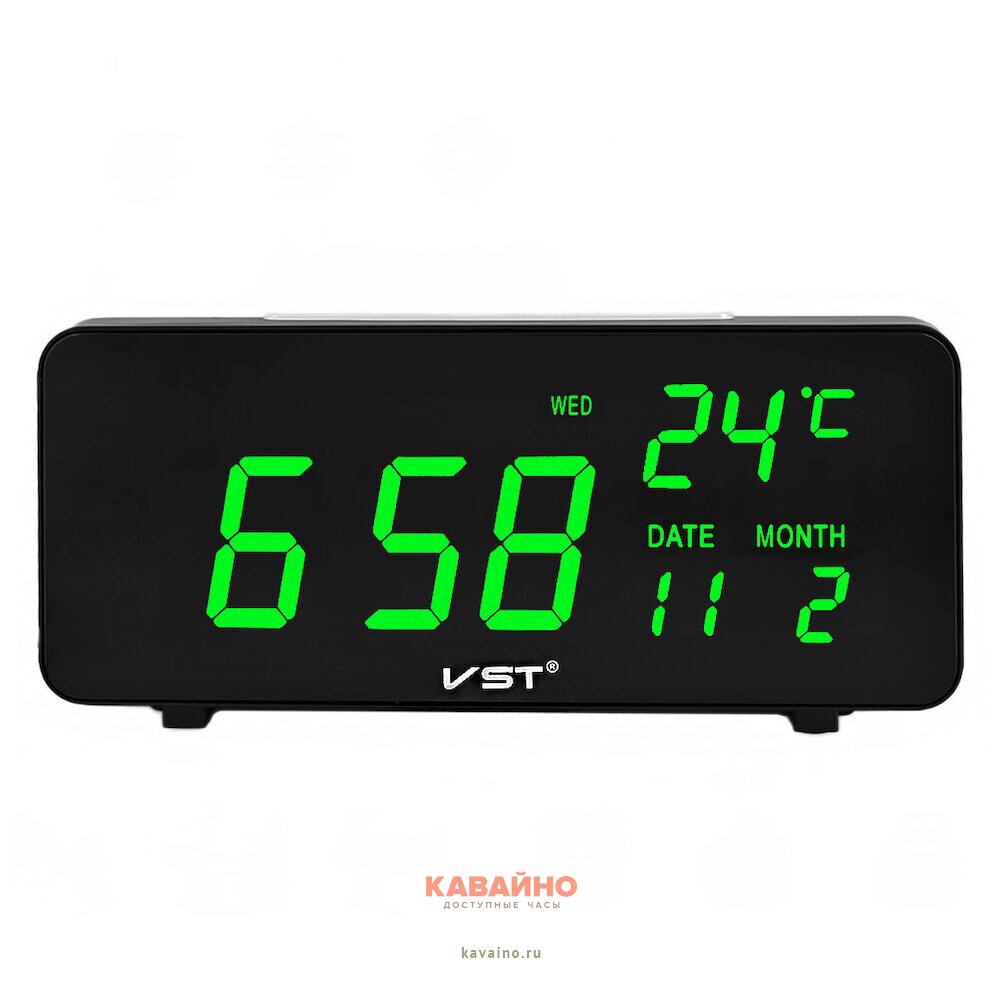Сетевые часы VST763W-4 220В зел.циф+USB каб (без адаптера)